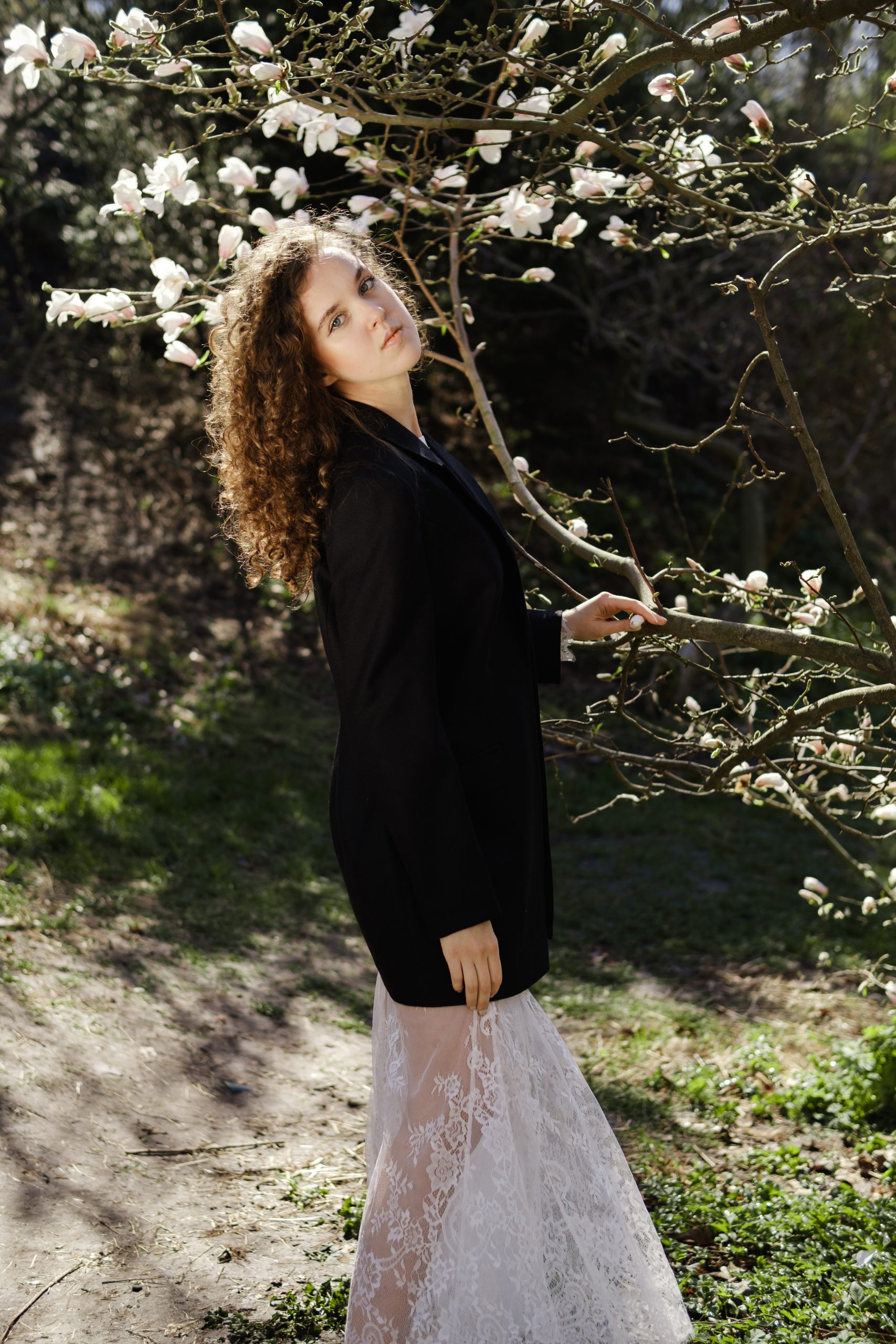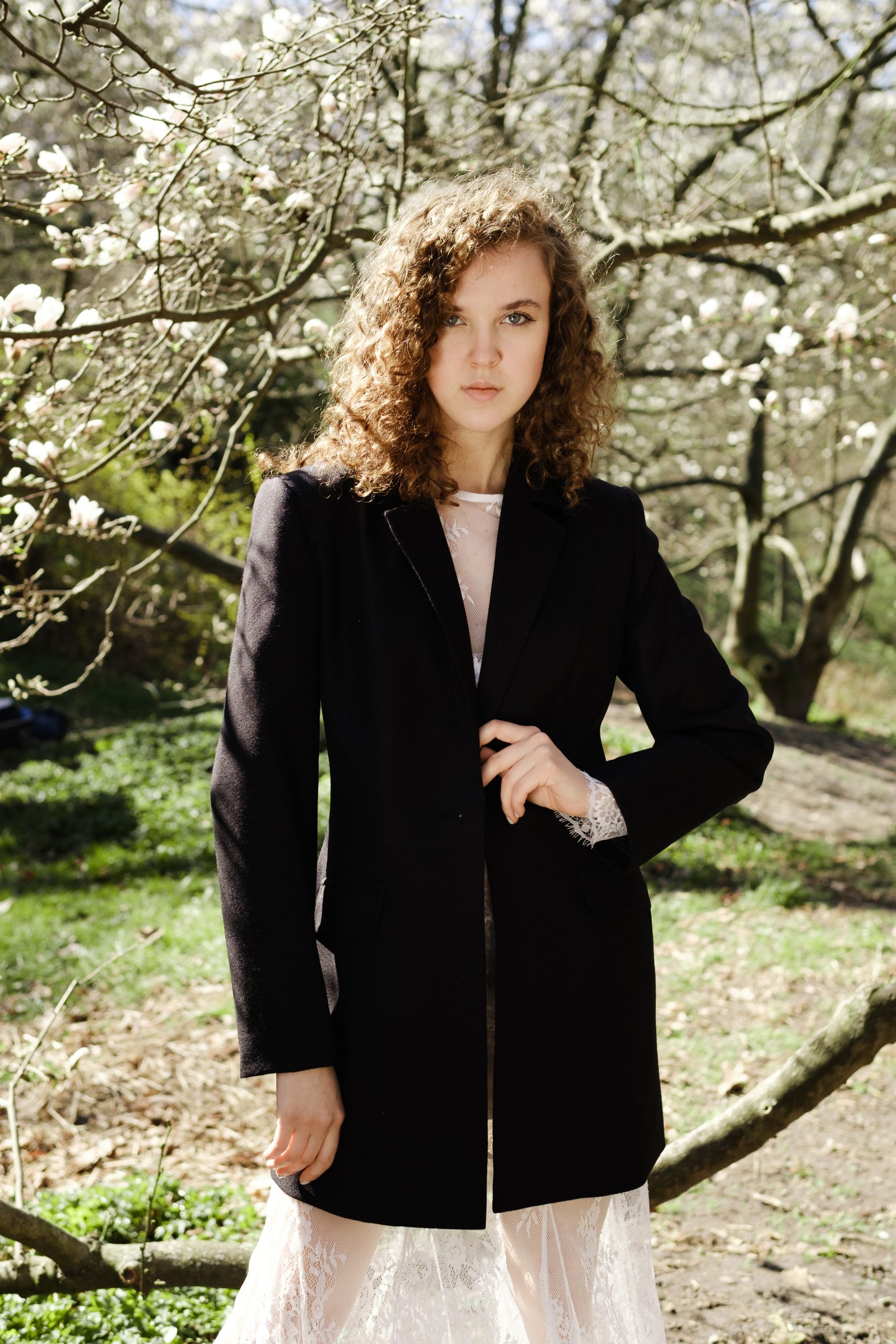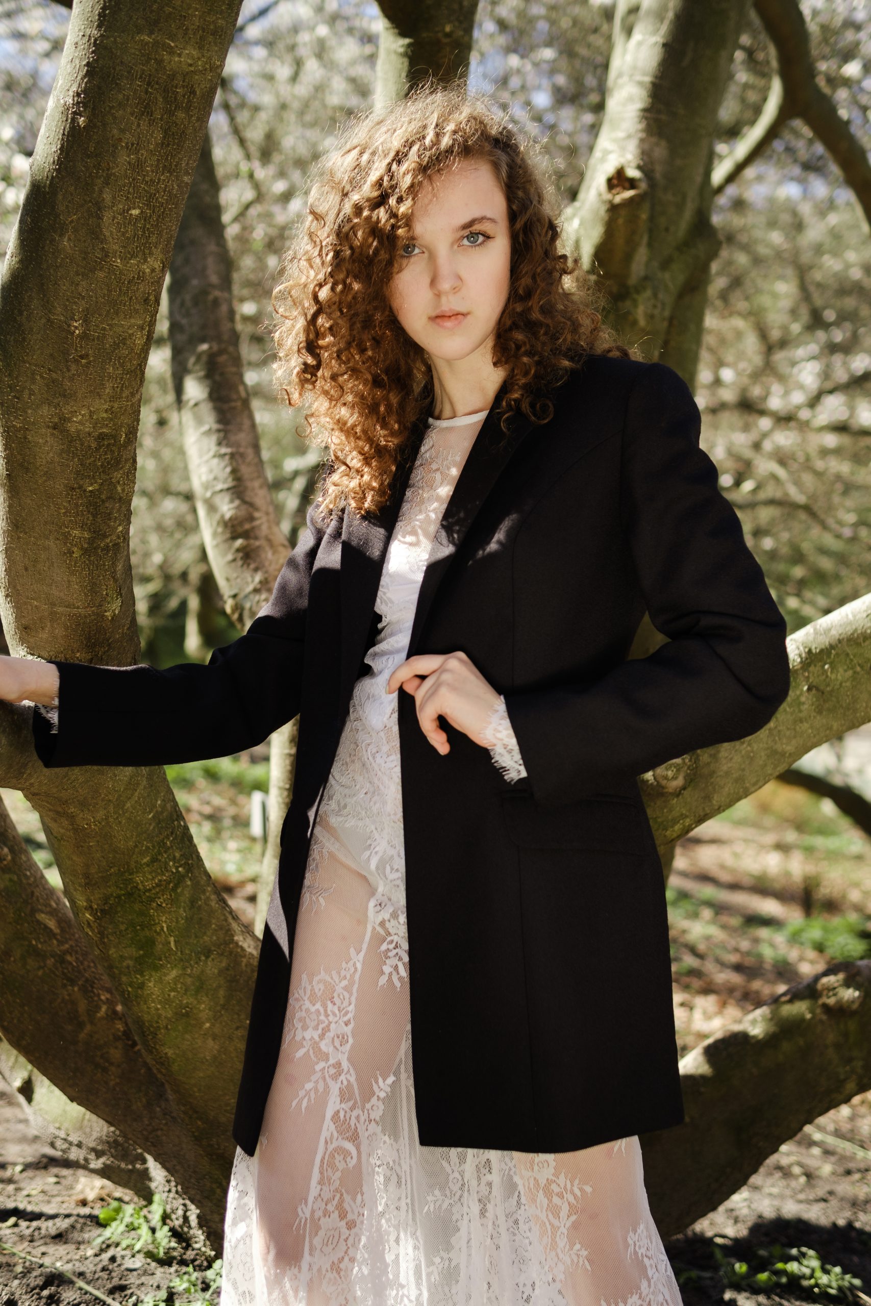 Класичний чорний жакет — вічна база, що перетворює будь-який образ на витвір елегантності. Стриманий силует, загострені лацкани та чітка лінія плеча створюють благородний і зібраний вигляд. Виготовлений з якісної костюмної тканини з додаванням вовни, жакет тримає форму та пасує до різних фігур. У цьому луці він виступає в несподіваному поєднанні з мереживною сукнею, демонструючи силу контрастів — м’якість і жіночність поруч із впевненістю та структурністю. Ідеальний як для офіційних подій, так і для стильних експериментів.